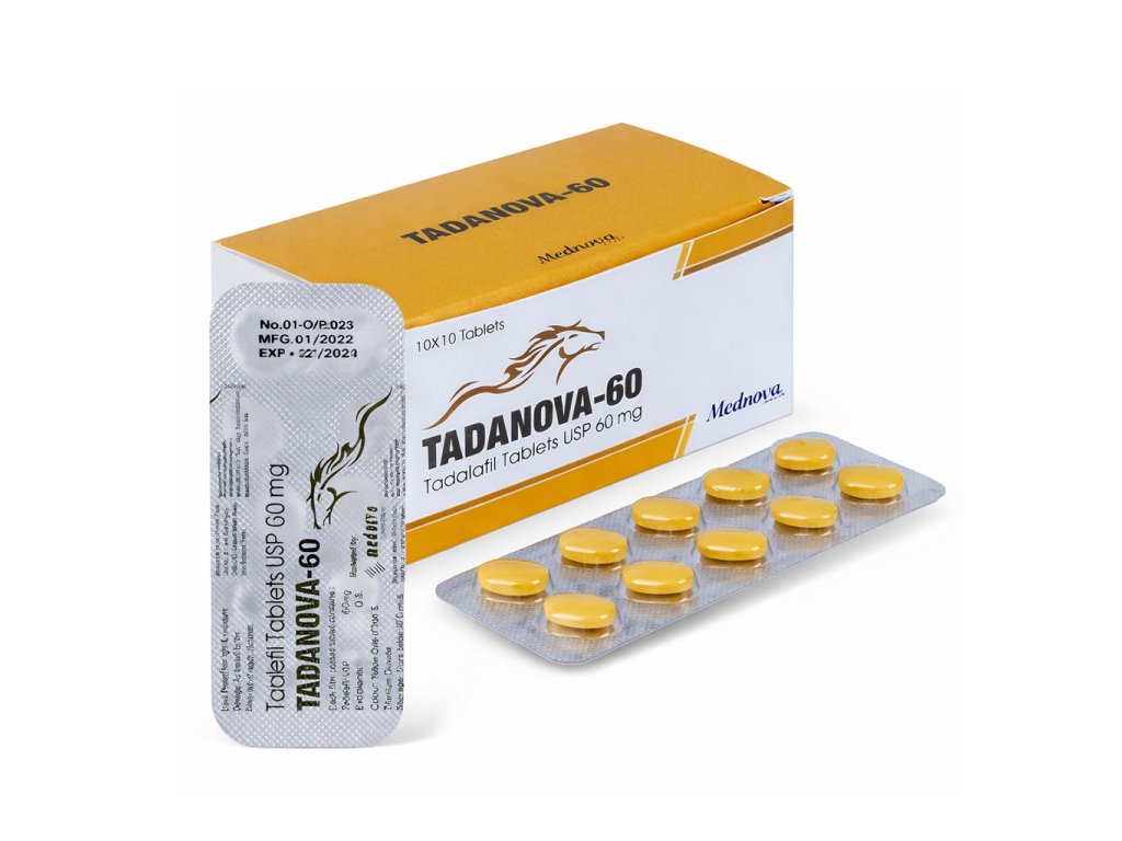 Tadanova 60mg (Tadalafil) je vyráběný společností Mednova Pharmaceuticals a je to nejoblíbenější náhrada (generikum) Cialisu (Tadalafil). Tadanova je lék pro muže kteří trpí poruchami erekce nebo pokud erektilní dysfunkcí a po jejím užití je možné prakticky každému muži dosáhnout kvalitní erekce a tudíž si užít lepší sexuální styk.Tadanova (Tadalafil) může účinkovat až 36 hodin, to je mnohem déle, než Viagra (Sildenafil) nebo ostatní přípravky obsahující látku Sildenafil citrate. Z tohoto důvodu je často nazýván “víkendové tableta”. Díky dlouhotrvajícímu účinku se Tadanova 60mg (Tadalafil) stal nejvíce předepisovaným lékem k léčbě erektilní dysfunkce. Tadanova 60mg obsahuje látku Tadalafil, která stimuluje prokrvení penisu čímž při sexuální stimulaci dochází k lepší a pevnější erekci. Tadanova 60mg (Tadalafil) také pomáhá udržet kvalitní dlouhotrvající erekciu. Tadanova (Tadalafil) účinkuje již cca po 30 minutách od užití a jeho účinek trvá až 36 hodin. Tadanova 60mg (Tadalafil) se stal v posledních letech téměř nejoblíbenějším lékem na poruchy erekce.